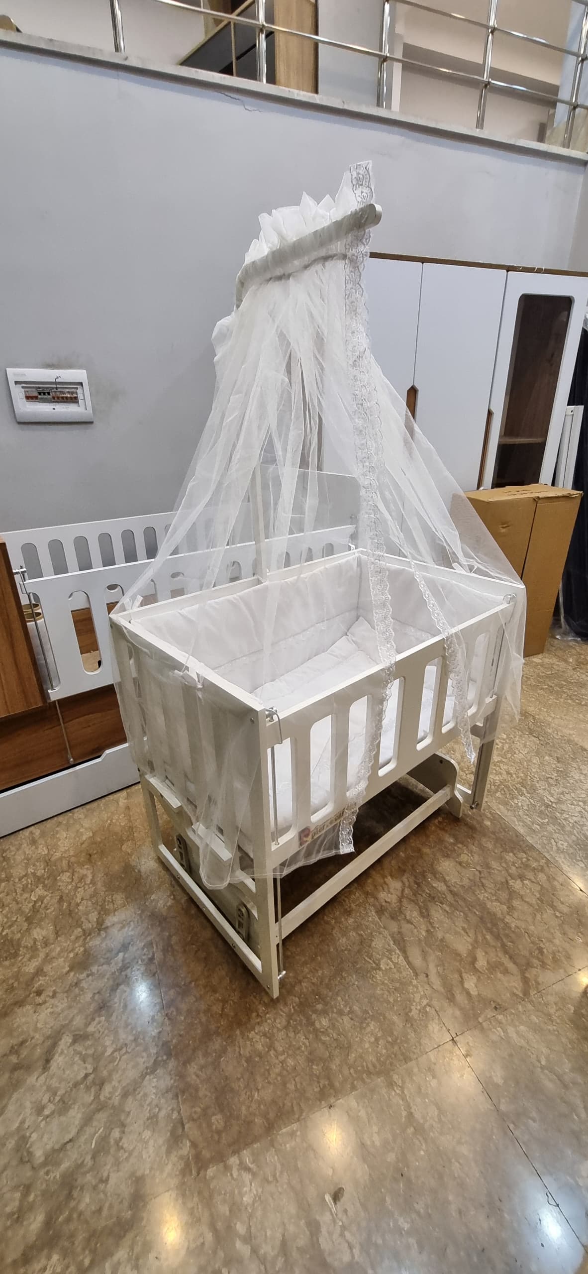 تخت کنار مادر مدل مینیاتور. آرامش خواب نوزاد خودتون رو به ما بسپارید.این تخت گهواره شو . دارای تنظیم ارتفاع دارد . داری تنظیم شیب می‌باشد . جنس چوب درجه یک و با ضمانت می‌باشد. برای ارسال فوری و سریعتر میتوانید از واتساپ یا پیج گهواره پتروس سفارشتون رو ثبت کنید .